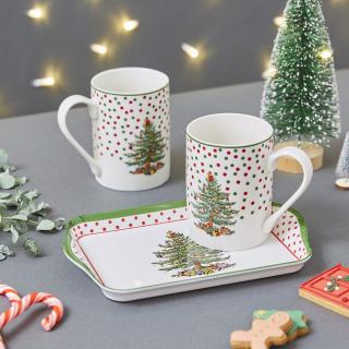 The Christmas season calls for warming tipples and scrumptious treats, and this Polka Dot Mug and Tray is perfect for just that. Serve up an indulgent hot chocolate or a spice-infused mulled wine alongside a warm mince pie or two, with this fun and festive set. Part of Spode’s much-loved Christmas Tree collection, the two porcelain mugs and melamine tray feature the iconic Christmas Tree design with a playful green and red spot print adding an extra touch of seasonal colour.