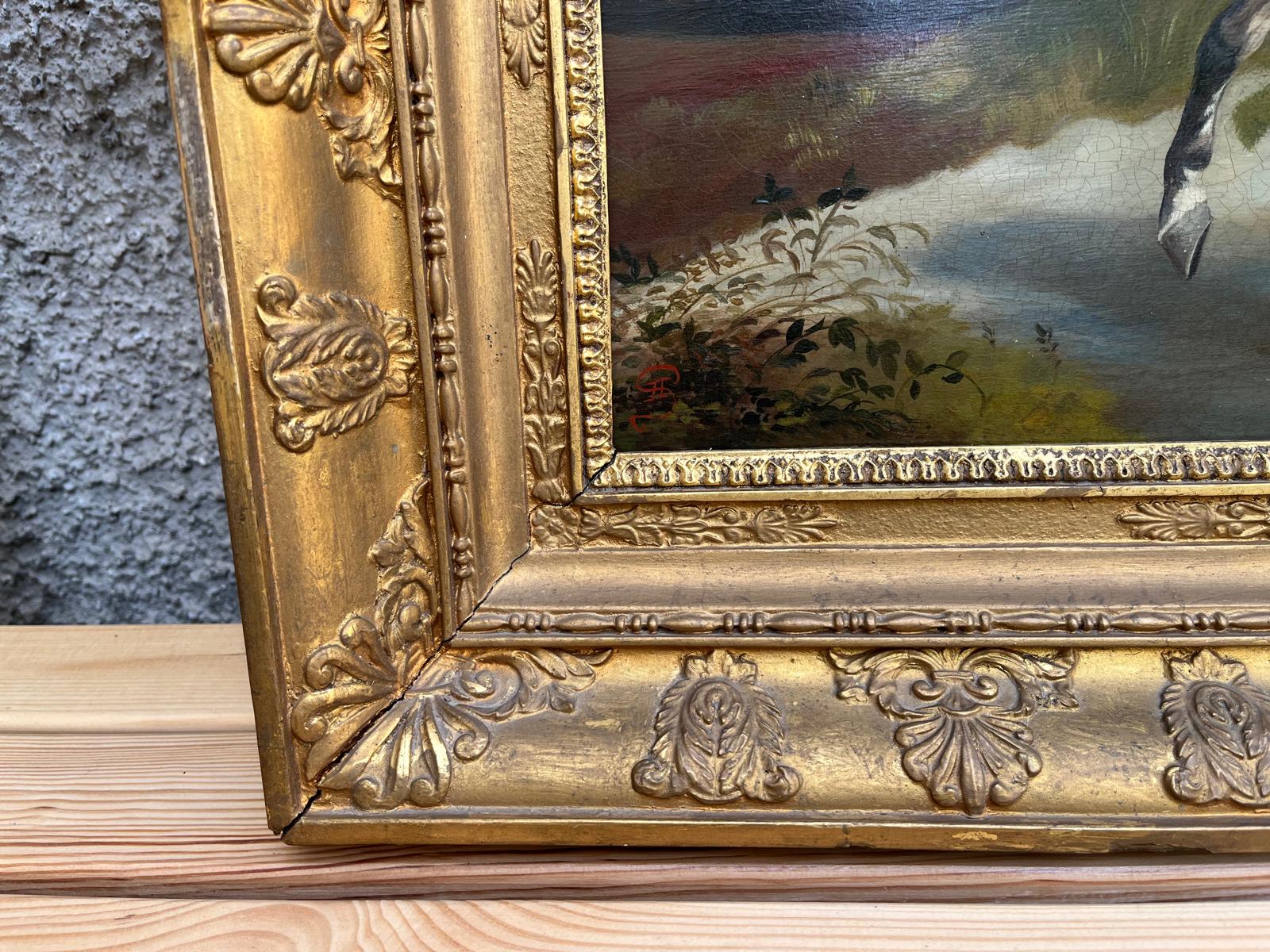 English Hand Painted reproduction Horse and Rider Portrait In a antique regency frame