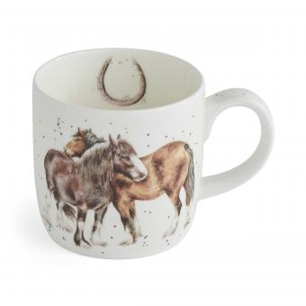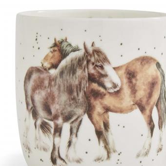 Diese wunderschön illustrierte „Side by Side“-Pferdetasse aus feinem Knochenporzellan von Royal Worcester ist ein reizendes Geschenk oder eine perfekte Ergänzung für Ihre Küche. Die Tasse zeigt auf Vorder- und Rückseite jeweils ein anderes Motiv sowie ein drittes am inneren Rand. Fassungsvermögen: 0,3 l. Spülmaschinen- und mikrowellengeeignet.